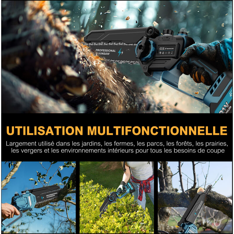 Notre Petite scie électrique pour branche est conçue pour répondre aux besoins d’entretien extérieur avec précision et efficacité, notre solution compacte sans fil permet d’intervenir rapidement sur les travaux d’élagage et de coupe légère. Grâce à une conception équilibrée et un format réduit, elle facilite les manipulations dans des zones difficiles d’accès. Son fonctionnement sur batterie garantit une utilisation autonome sans contrainte de câble. L’association d’un moteur puissant et d’une chaîne optimisée assure des coupes nettes sur différents types de bois.
