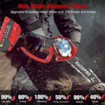 Notre tronçonneuse électrique sans fil est équipée d’un moteur sans balai puissant, offrant une durée de vie augmentée de 90% et une puissance de sortie supérieure de 80%. Vous bénéficierez d’une efficacité accrue et d’une réduction de la consommation d’énergie de 50%. Avec une vitesse de chaîne de 10 m/s, elle peut couper des bûches de 4 pouces de diamètre en seulement 8 secondes.