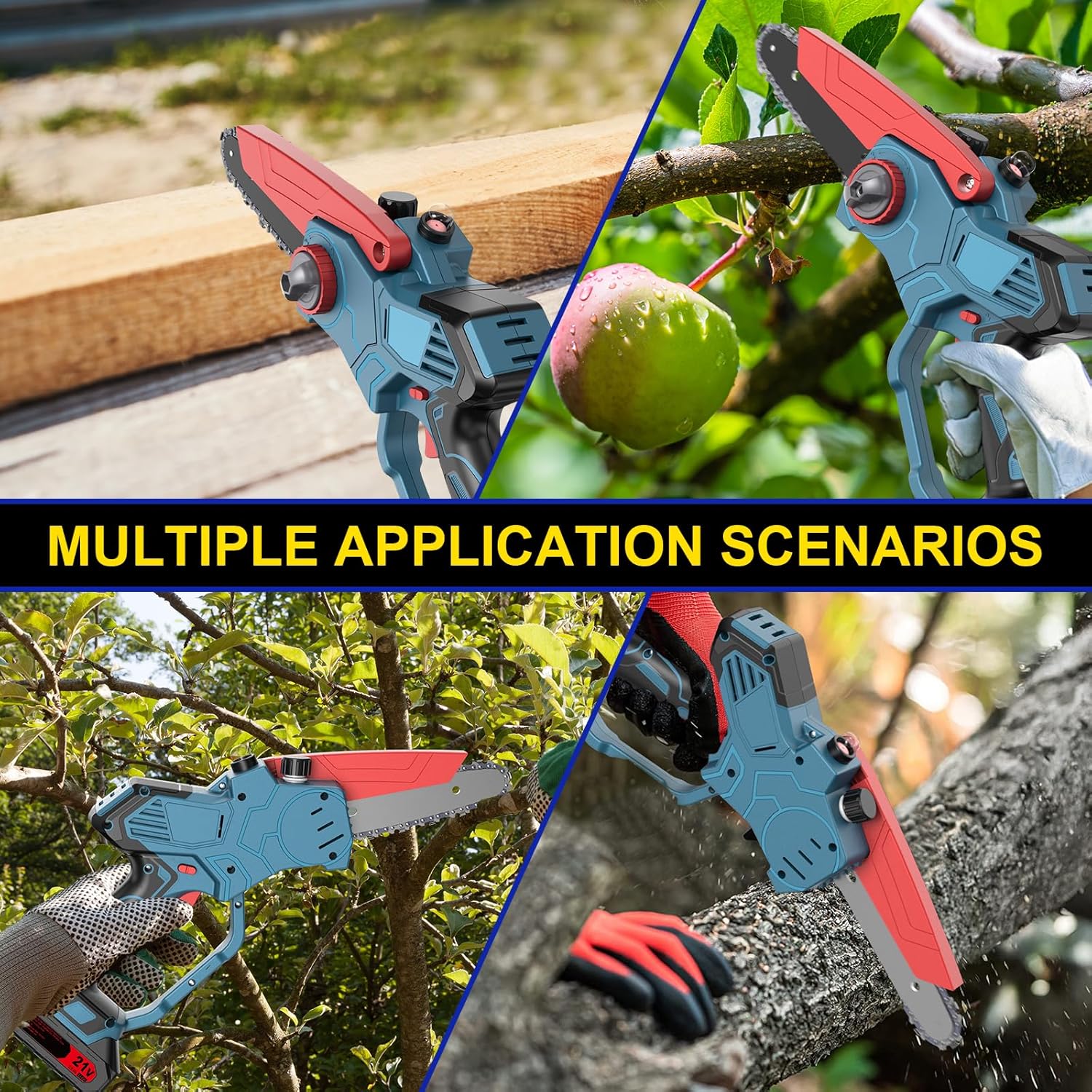 Notre scie à chaîne miniature à 6 pouces de lame est spécialement pensée pour répondre aux besoins des jardiniers et des bricoleurs. Elle vous permet de couper des branches et des petits troncs avec une facilité et une rapidité déconcertantes. La chaîne en acier allié glisse à travers le bois avec une précision remarquable, vous garantissant des coupes nettes. Son poids plume assure une prise en main stable, même lors d’utilisations prolongées, réduisant ainsi la fatigue.