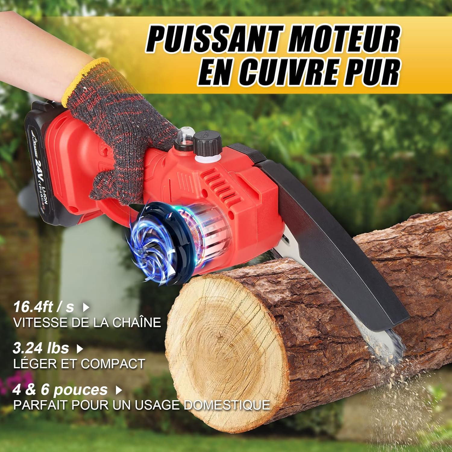 Notre Petite Scie Électrique Jardin est conçue pour vous offrir une expérience de coupe rapide, efficace et sécurisée. Grâce à ses fonctionnalités innovantes et sa conception ergonomique, elle facilite vos travaux d’élagage et de coupe de bois, tout en assurant une utilisation confortable et prolongée. Voici les points forts de ce produit qui en fait un incontournable pour vos activités de jardinage.