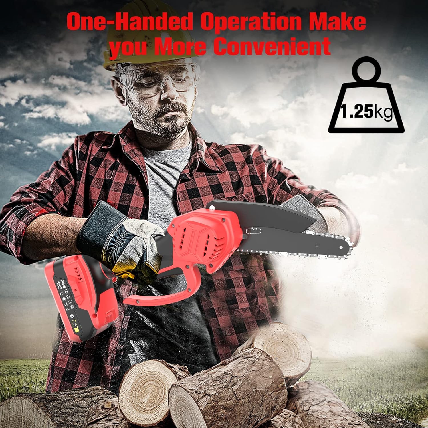 Pesant seulement 1,25 kg, notre tronçonneuse est légère et compacte, ce qui réduit la fatigue des bras pendant la coupe. Sa conception permet une utilisation d’une seule main, la rendant plus facile et plus sûre que les modèles plus lourds. Sa taille compacte lui permet également d’accéder à des espaces restreints où les tronçonneuses plus grandes ne peuvent pas aller.