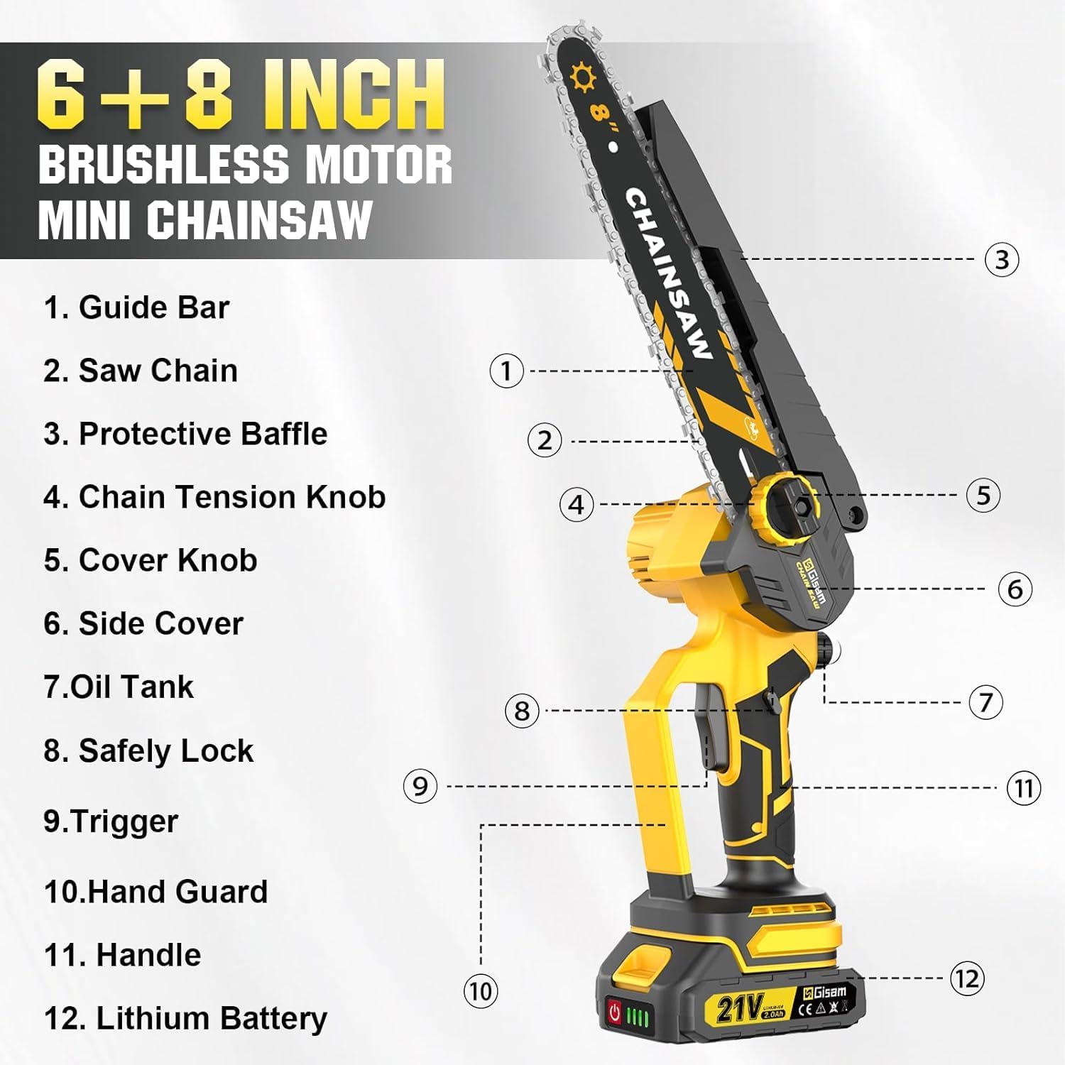 Notre outil d’élagage portatif est doté d’un moteur sans balais de 1000 watts, une puissance considérable pour un outil de cette taille. Ce type de motorisation, reconnu pour sa grande efficacité énergétique et sa longévité, ne subit pas l’usure des balais de charbon, ce qui le rend quasiment sans entretien. Vous pouvez ainsi travailler sans vous soucier des odeurs de brûlé, avec une puissance maximale et constante. Cette conception avancée garantit une performance de coupe optimale, capable de trancher des bois jusqu’à 8 pouces d’épaisseur.