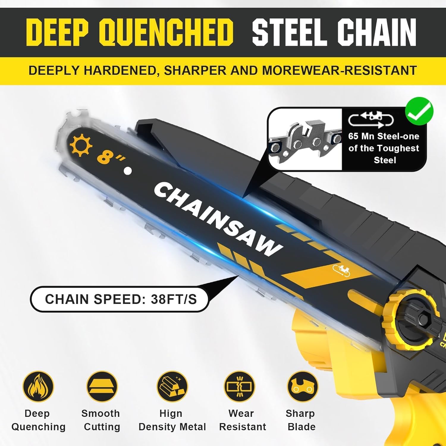 Grâce à ses performances et à son design, notre outil d’abattage portatif atteint une vitesse de coupe maximale de 38 pieds par seconde. Cette vitesse impressionnante vous permet de découper des troncs et des branches épaisses avec une facilité déconcertante, comme si vous tranchiez du beurre chaud avec un couteau. Nous avons amélioré notre modèle pour qu’il soit plus performant que la plupart des scies électriques de 4 à 6 pouces du marché, vous offrant ainsi une efficacité supérieure pour un gain de temps considérable. Cette rapidité d’exécution est un véritable atout pour vos projets.