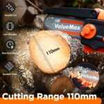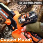 Grâce à sa vitesse élevée de 3700 tr/min, notre tronçonneuse miniature peut couper du bois de 10 cm de long en seulement 6 secondes. Sa capacité de coupe maximale de 4 pouces (110 mm) et sa chaîne de haute qualité assurent une coupe fluide tout en offrant une excellente résistance à l’usure, même lors des tâches les plus exigeantes.