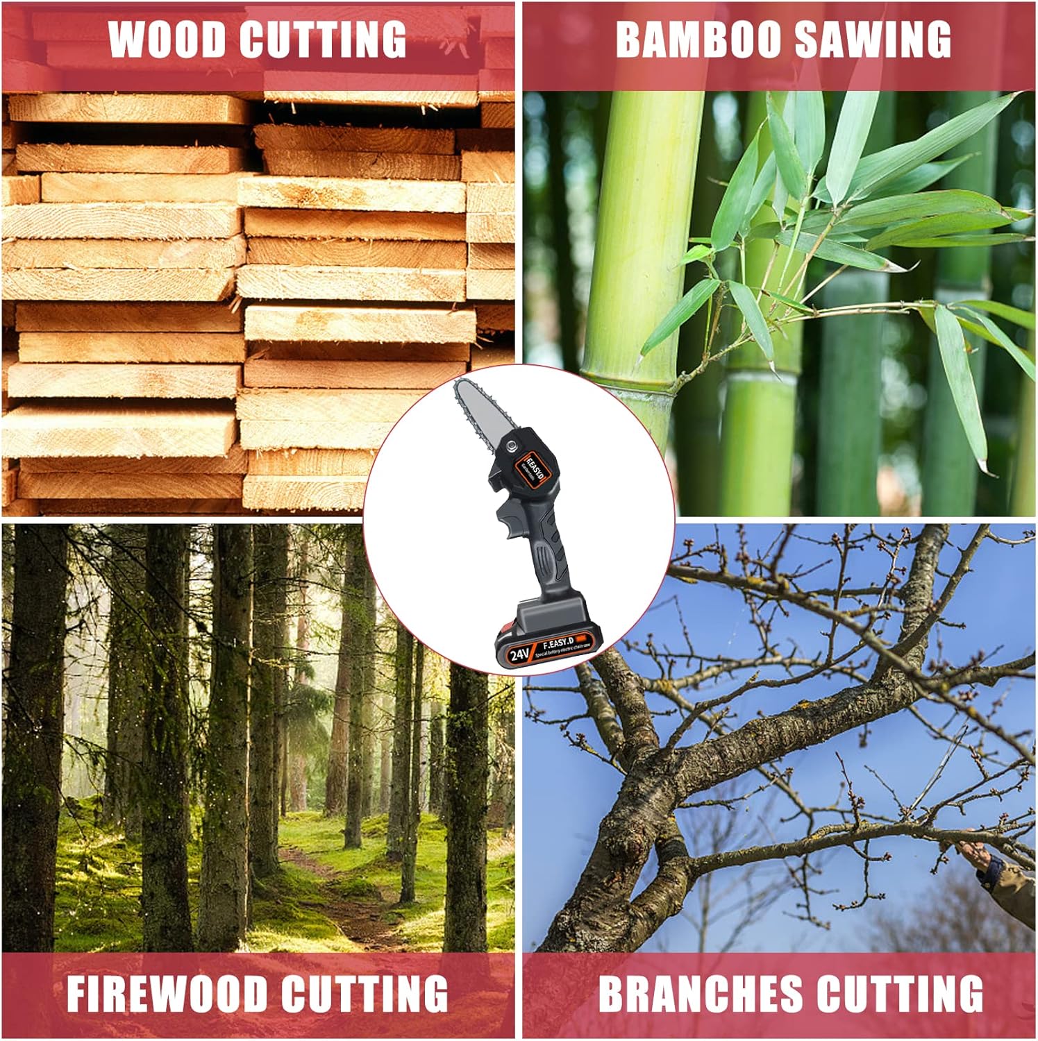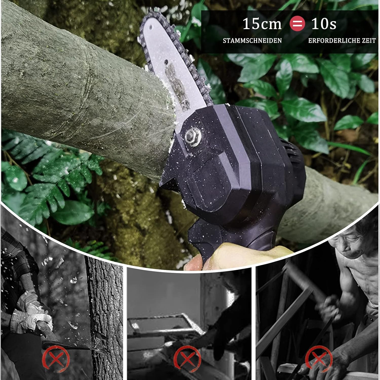 En conclusion, notre mini tronçonneuse sans fil est l’outil indispensable pour tous vos travaux de coupe et d’élagage. Sa puissance, sa légèreté et ses fonctionnalités avancées en font un allié de choix pour entretenir votre jardin en toute simplicité et sécurité.